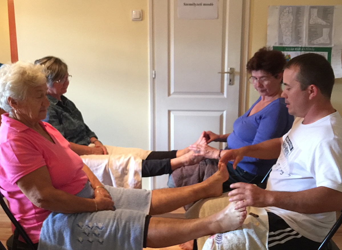 A praxisközösség egy különleges szolgáltatása a heti rendszerességgel megrendezett masszázs klub, amelyből ízelítőt kaphattak a részvevők a 15 órától megrendezett páros talpmasszázs tanuláson.
