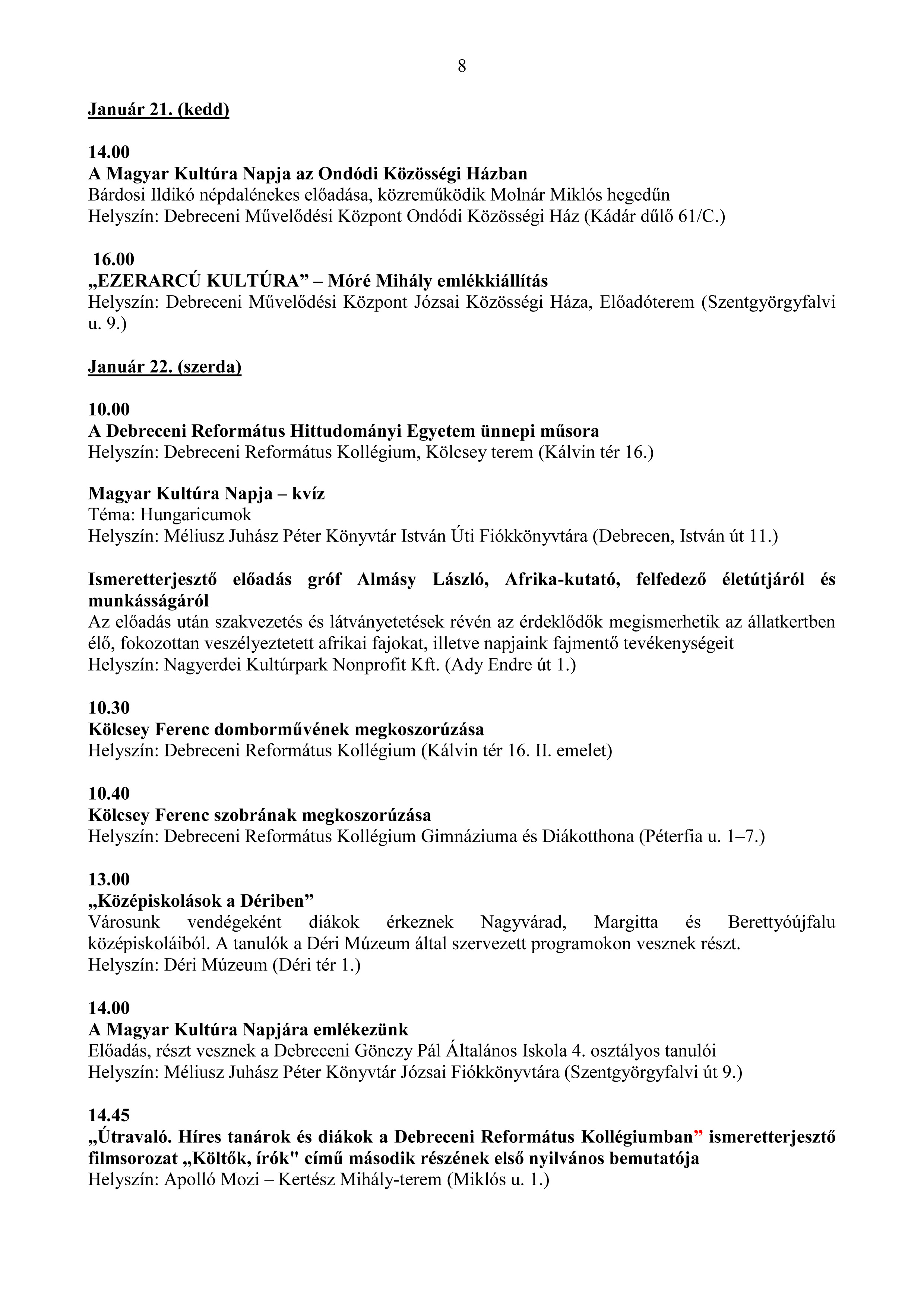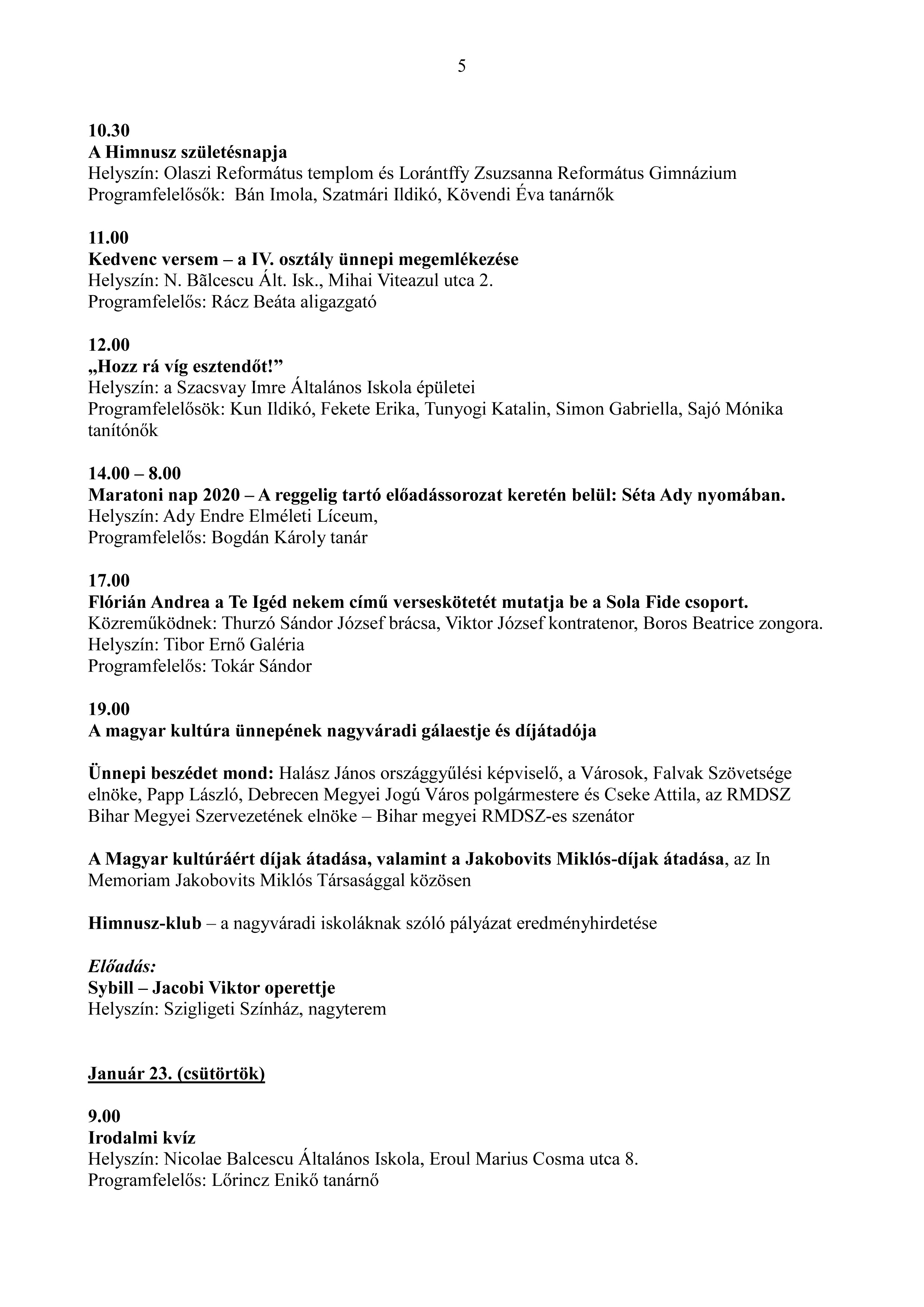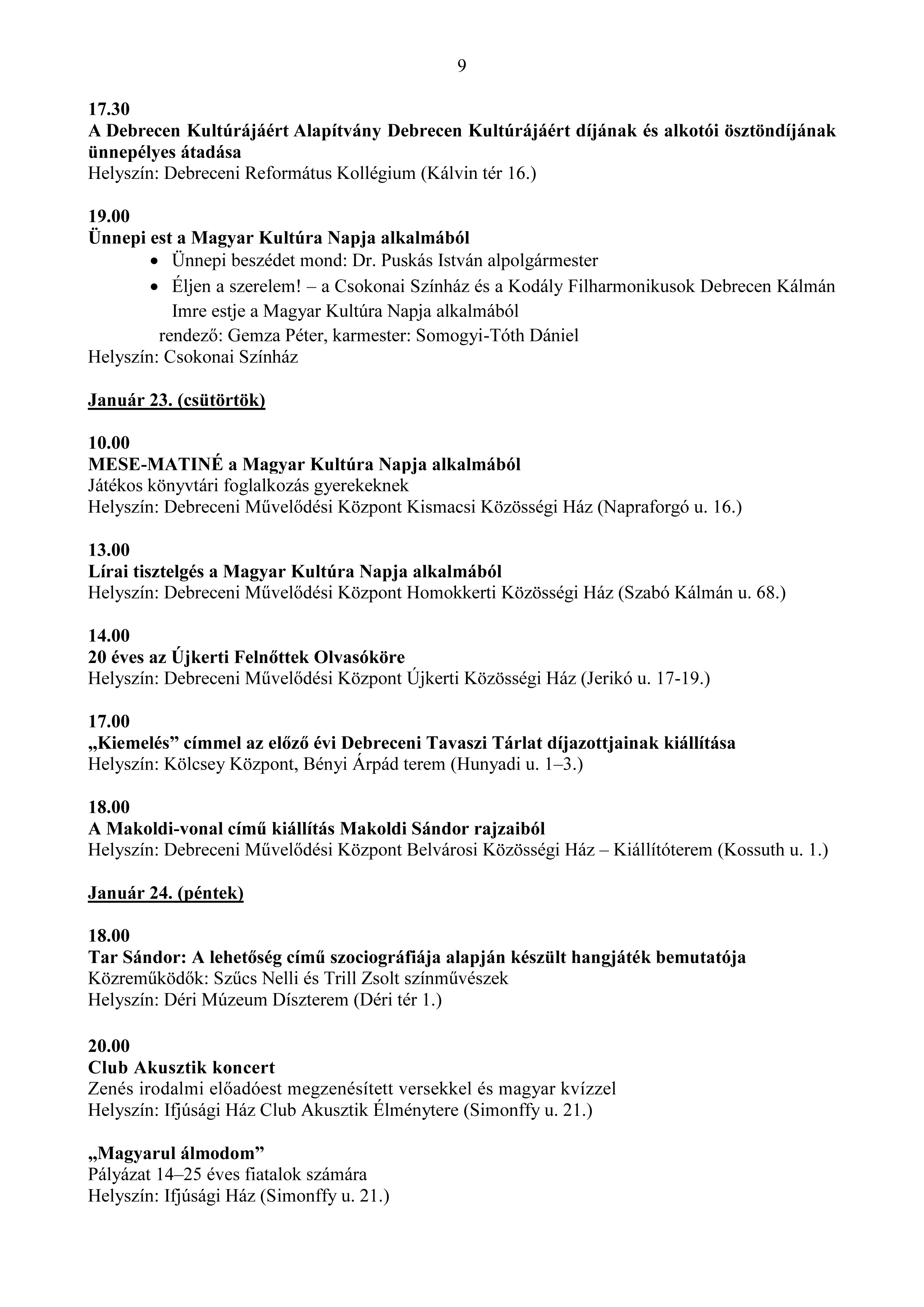2020 - A magyar kultúra ünnepe programsorozata