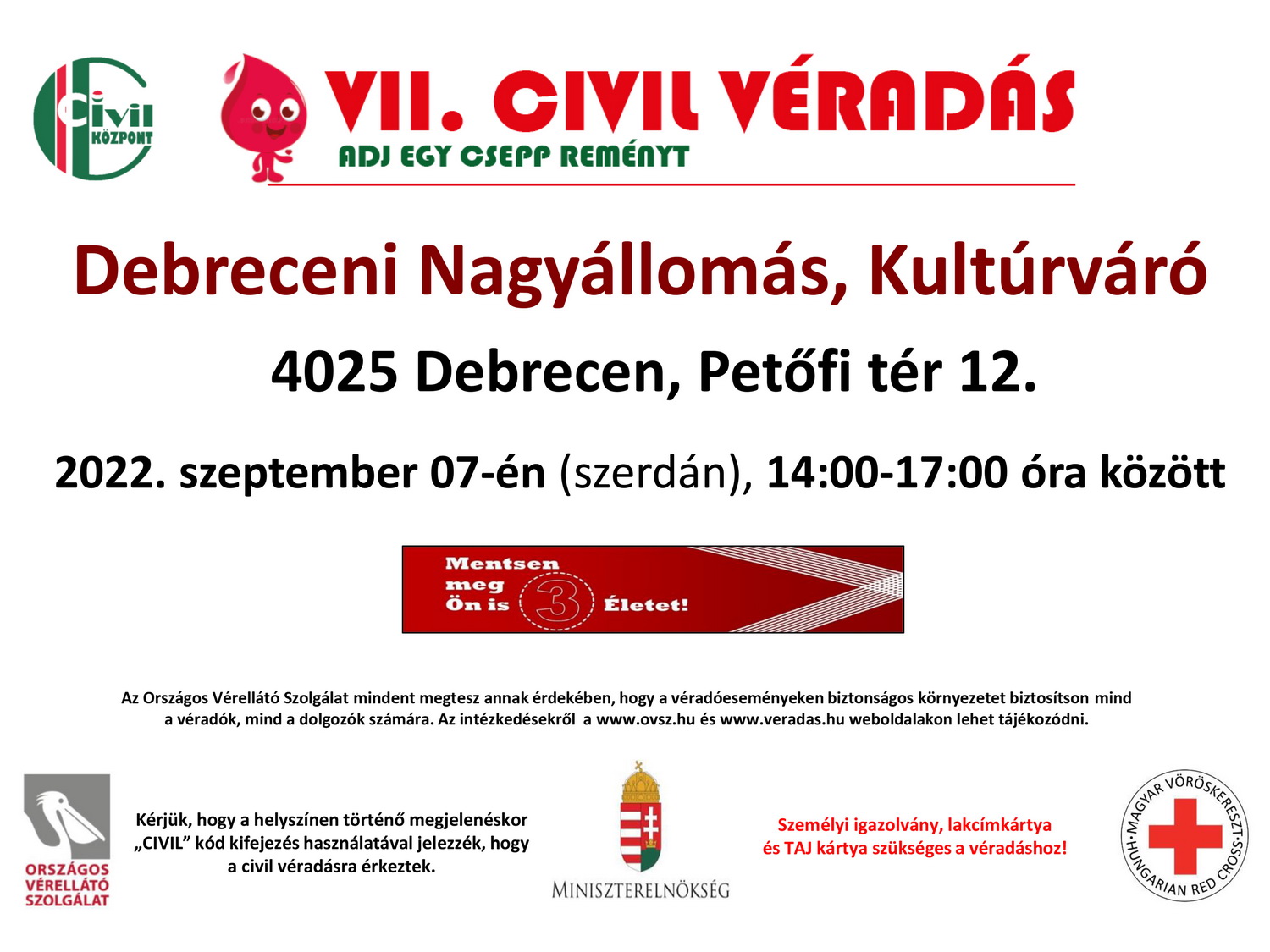 A Magyar Vöröskereszt Hajdú-Bihar Megyei Szervezetének nyilvános véradásai szeptember idusáig (szeptember 13-ig – ha már a latinok is szóba jöttek).