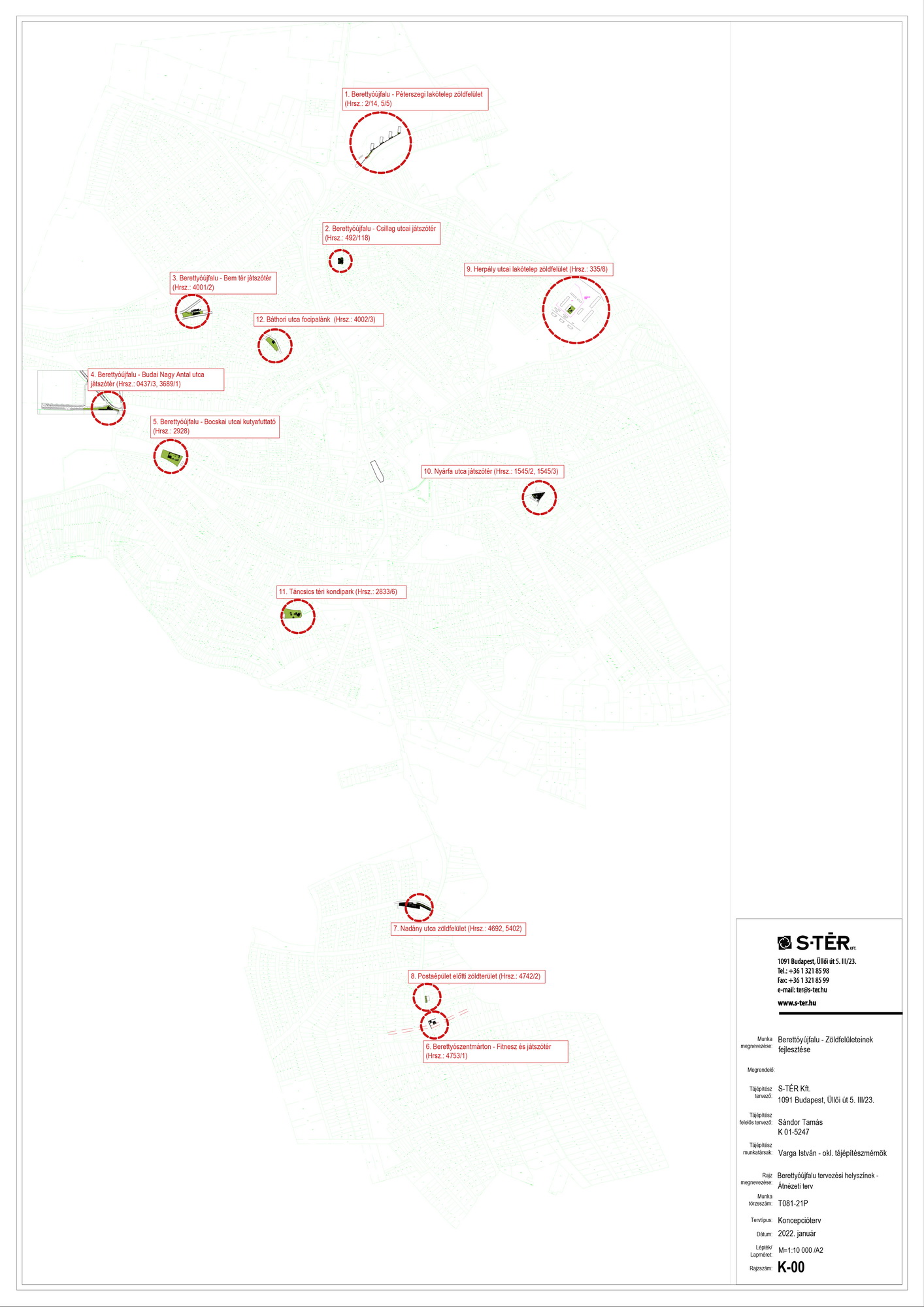 - A másik lába ennek a pályázati konstrukciónak a kertvárosi zöld infrastruktúra fejlesztése. Itt a Honvéd utca, Csillag utca, Bem Apó tér, Budai Nagy Antal utca, Bocskai utca, Puskin utca, Nadányi utca, Herpály utca, Nyárfa utca, Táncsics tér, Báthory utca közterületein lesznek zöldterület-fejlesztések valamint játszóterek kerülnek kialakításra. Fontos itt megjegyezni, hogy a város minden körzetében terveztünk fejlesztéseket, aminek a végleges helyszíneit a körzet képviselőjével egyeztetve választottuk ki.