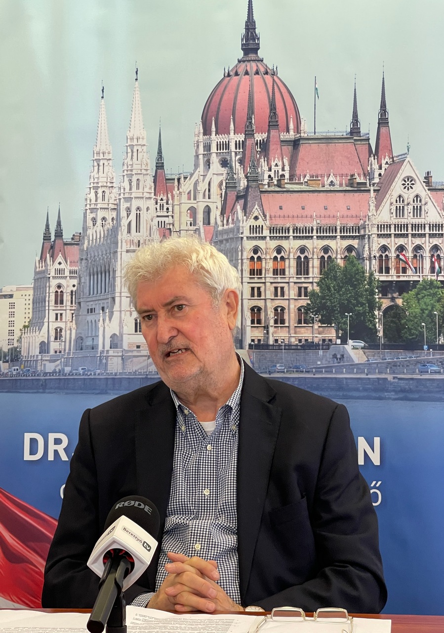 A Békepárti határozatról tartott sajtótájékoztatót Dr. Vitányi István országgyűlési képviselő Berettyóújfaluban, a Fidesz-irodában 2023. április 3-án.