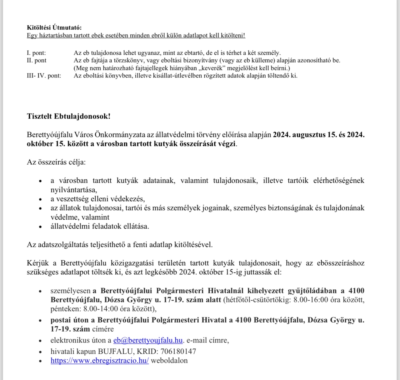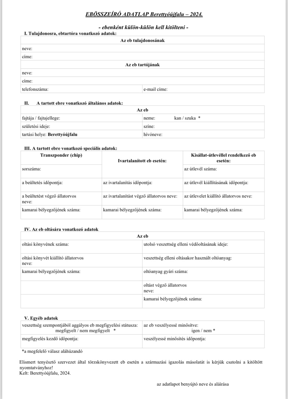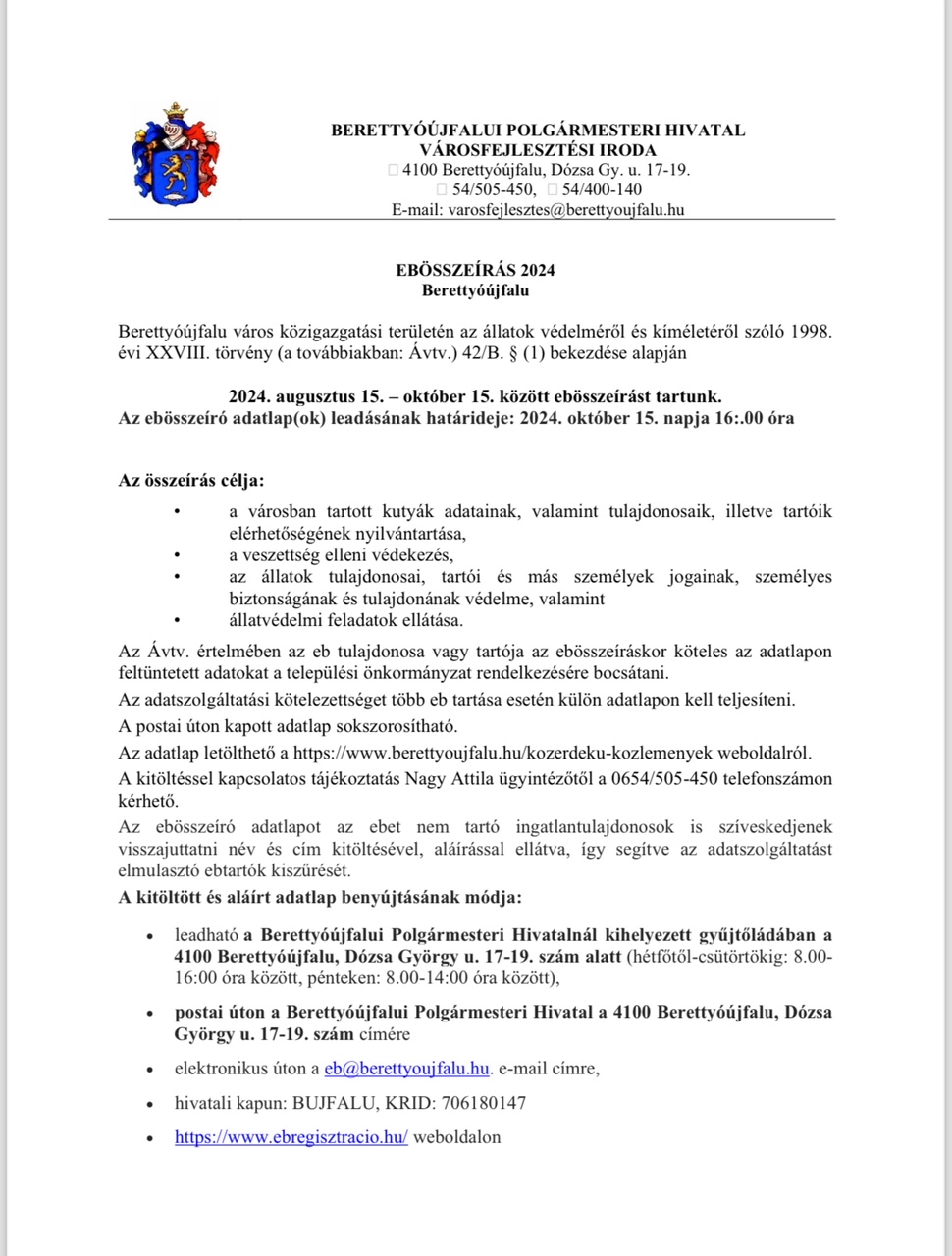 2024. augusztus 15. – október 15. között ebösszeírást tartunk.