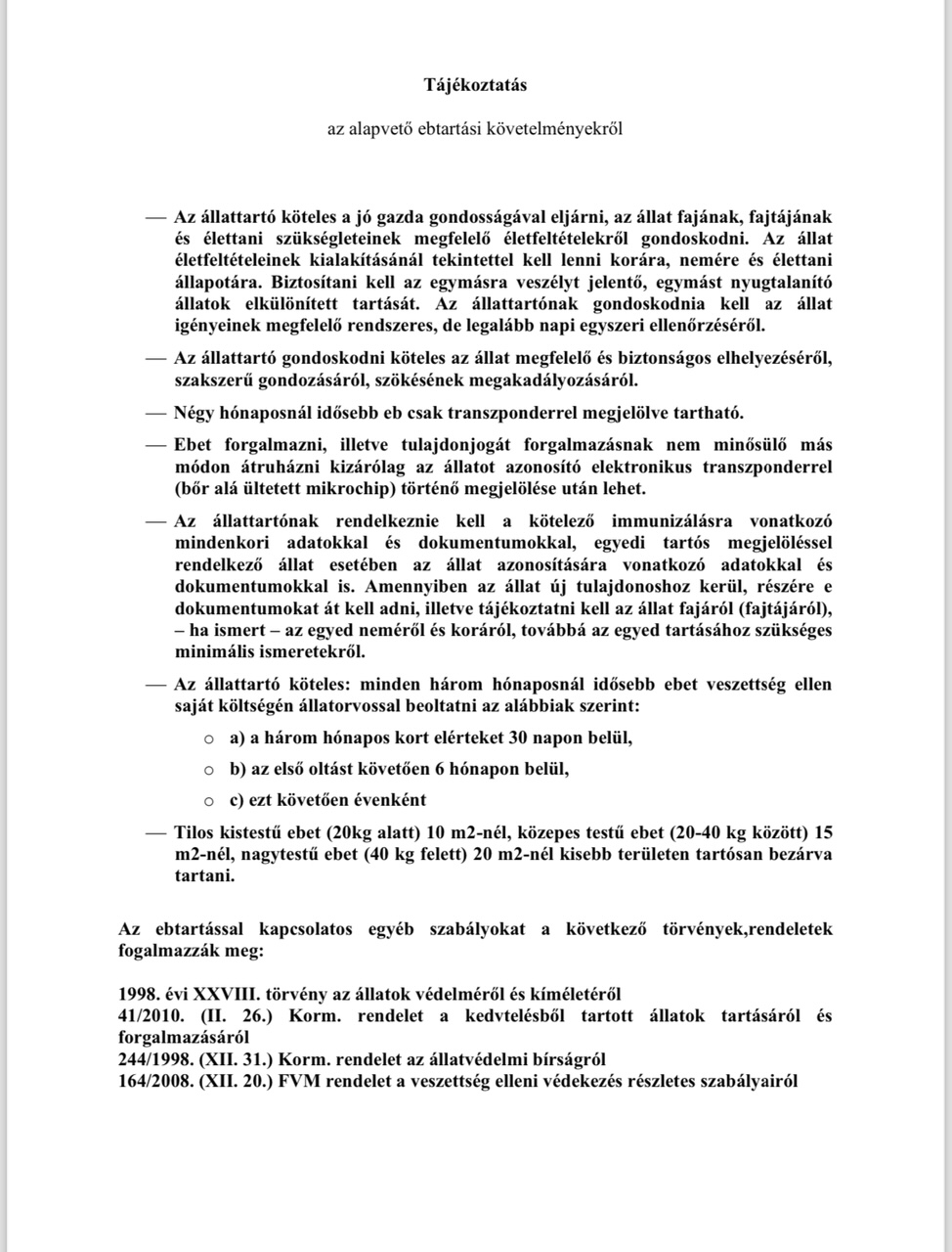 Berettyóújfalu város közigazgatási területén az állatok védelméről és kíméletéről szóló 1998. évi XXVIII. törvény (a továbbiakban: Ávtv.) 42/B. § (1) bekezdése alapján