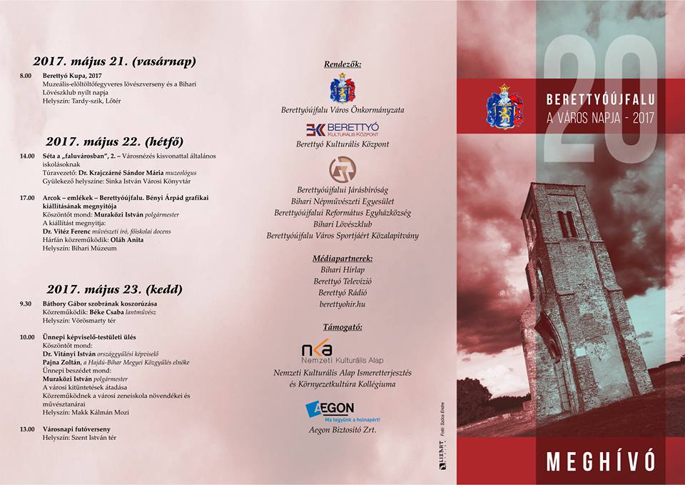 Berettyóújfalu Város Önkormányzata tisztelettel meghívja Önt és családját, barátait a város napja alkalmából 2017. május 15-23. között megrendezésre kerülő programokra.