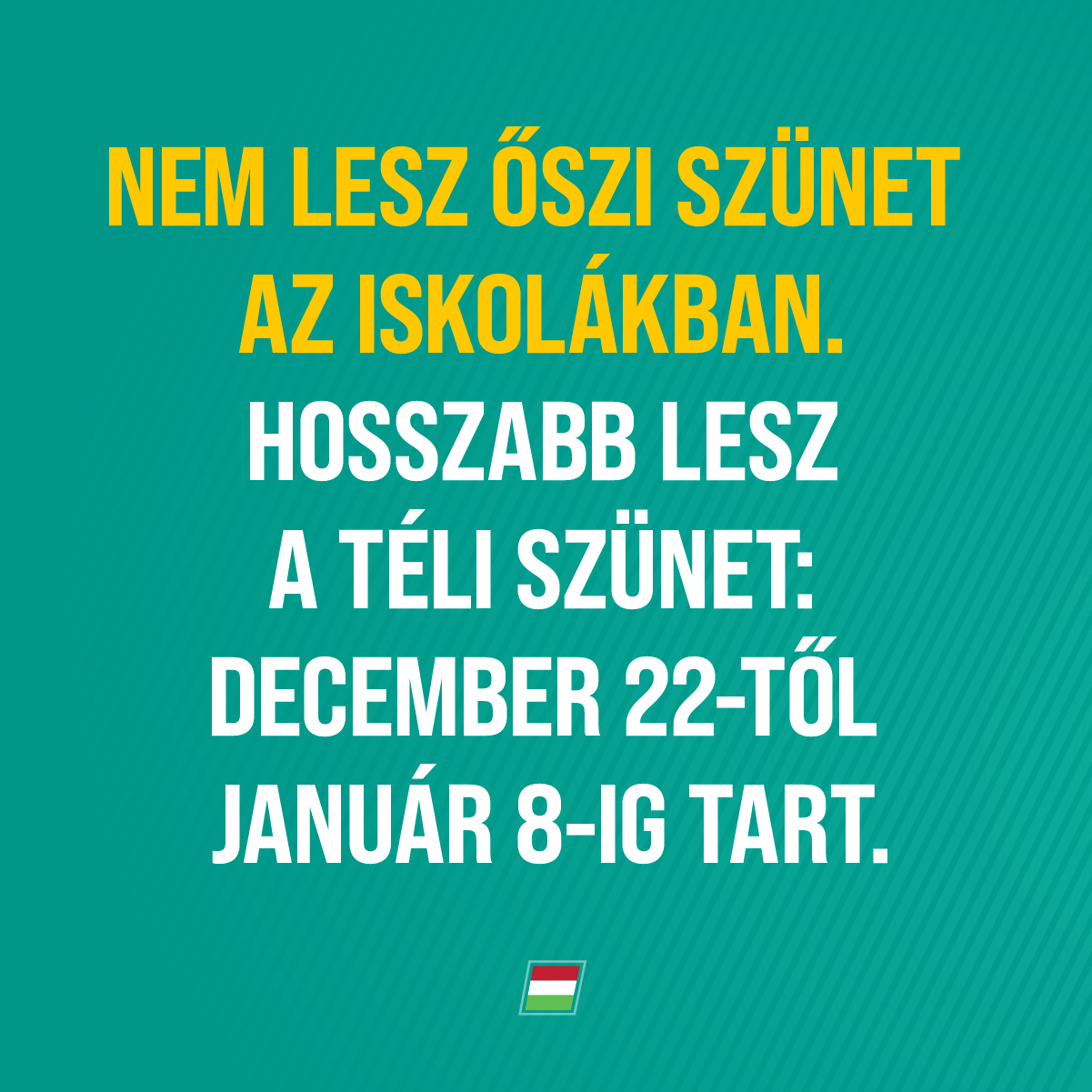 Gulyás Gergely Miniszterelnökséget vezető miniszter a Kormányinfón bejelentette, hogy az őszi szünet helyett idén hosszabb lesz majd a téli szünet. A takarékosság érdekében már december 22-én elkezdődik és egészen január 8-ig tart majd. Ugyanebben az időszakban kormányzati igazgatási szünet is lesz. Ezekben a napokban kötelezően szabadságot kell kivenniük a kormányzati igazgatásban dolgozóknak, így jelentős spórolásra van mód a közigazgatás területén is – tette hozzá.