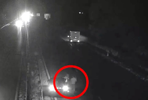 Múlt szombat este az M1-es autópálya komáromi szakaszán, a Hegyeshalom felé vezető oldalon egy román rendszámú személyautó ráfutott egy kisteherautóra. A koccanás után utóbbi teljesen szabályosan lehúzódott a leállósávra. Viszont a személyautó ott maradt a belső sávban, annak ellenére, hogy teljesen működőképes maradt a jármű. Sőt, az autó utasai (3) lazán dohányoztak, beszélgettek, a pár még vígan csókolózott is, nézegették a sérült járművet és mászkáltak a belső sávban.