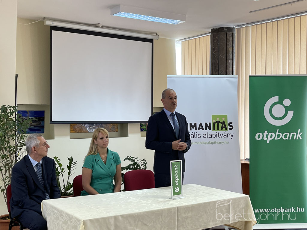 Barkó József, az OTP Bank Nyrt. Északkelet-magyarországi Régiójának Ügyvezető Igazgatója adta át a Humanitás Szociális Alapítvány közreműködésével beszerzésre került adományokat a berettyóújfalui Gróf Tisza István Kórház képviseletében Dr. Muraközi Zoltán főigazgató részére.