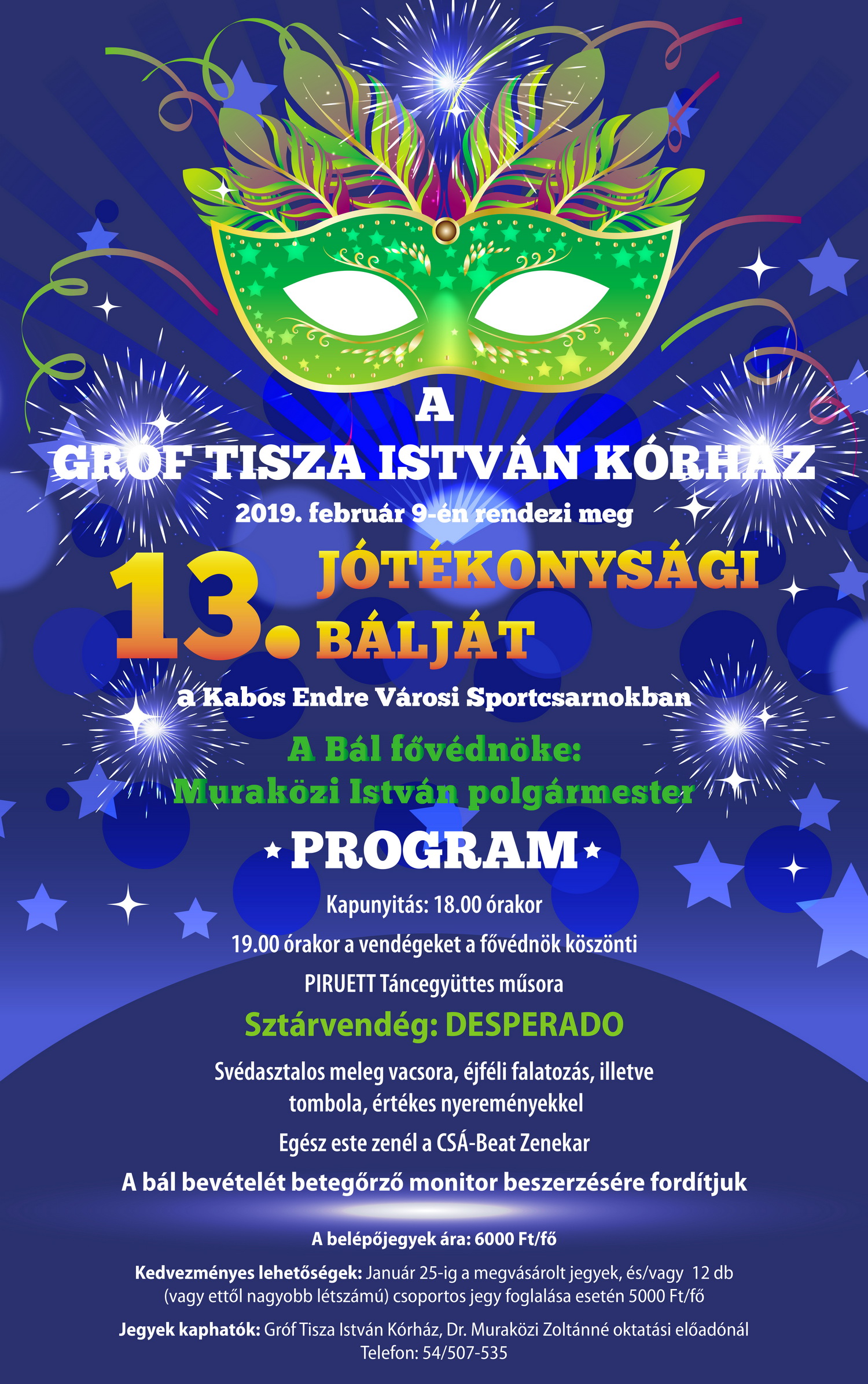 A Gróf Tisza István Kórház 2019. február 9-én, 18 órai kezdettel tartja 13. Jótékonysági Bálját Berettyóújfaluban, a Kabos Endre Városi Sportcsarnokban.