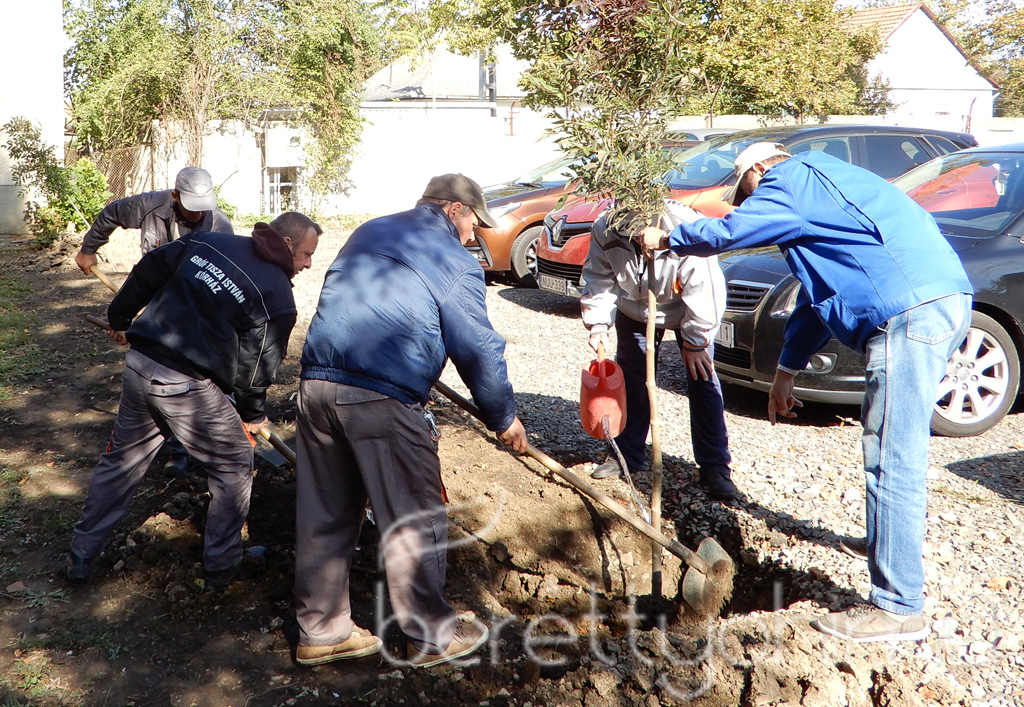 A régi kórházi strand helyén nemrég kialakított parkoló köré ültettek ma fákat a Gróf Tiszsa István Kórházban.