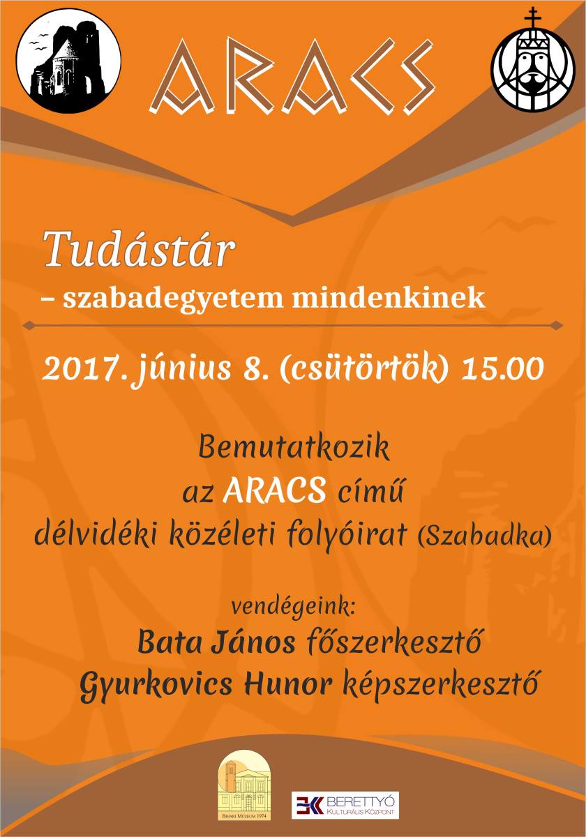 A Bihari Múzeum soron következő Tudástár rendezvényén, 2017. június 8-án, csütörtökön 15 órakor bemutatkozik az ARACS című délvidéki közéleti folyóirat (Szabadka).