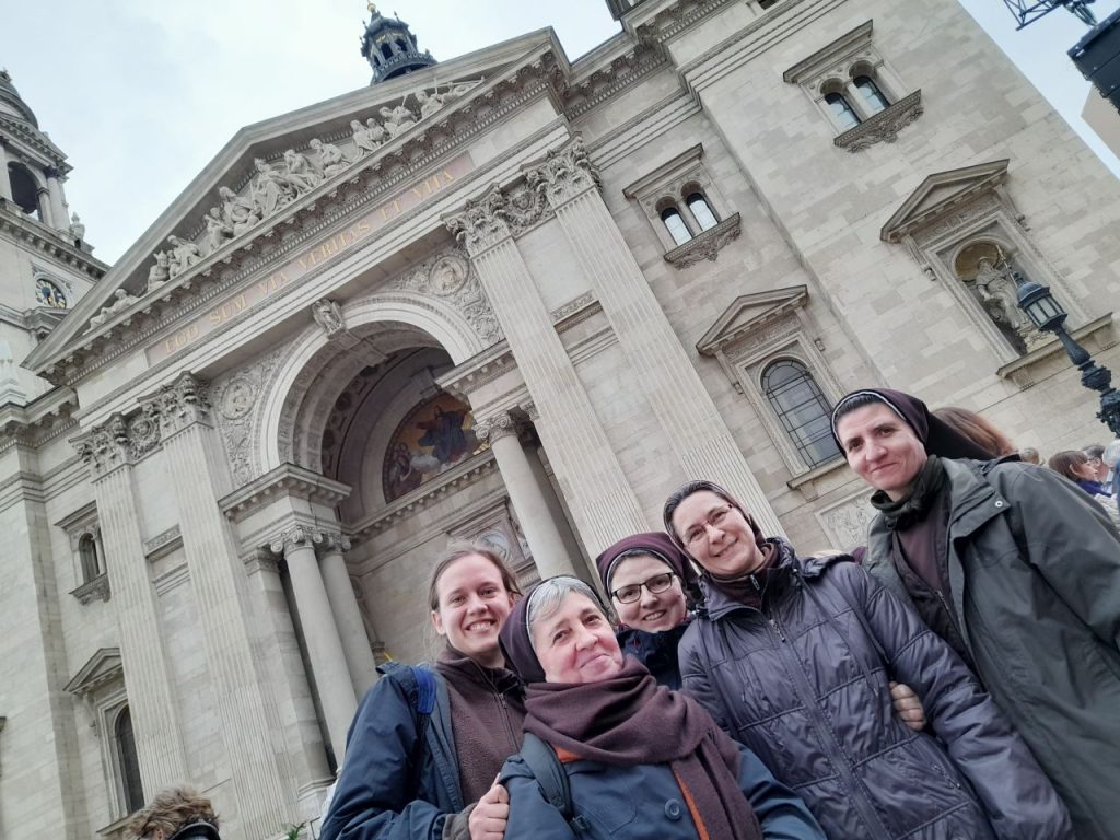 Reggel hatkor imával indul a nap, ezután délig munka, majd délben újra közös ima, és aztán ebéd. Délután szintén különböző szolgálataink vannak a házban és a városban. A házban több segítségnyújtással foglalkozó csoportnak, közösségnek adunk helyet, vagy esetenként mi szervezzük őket. Hétvégén gyakran továbbképzésen veszünk részt, időnként pedig kirándulni megyünk, vagy kulturális és egyéb eseményeket látogatunk, ami a mi feltöltődésünket jelenti.