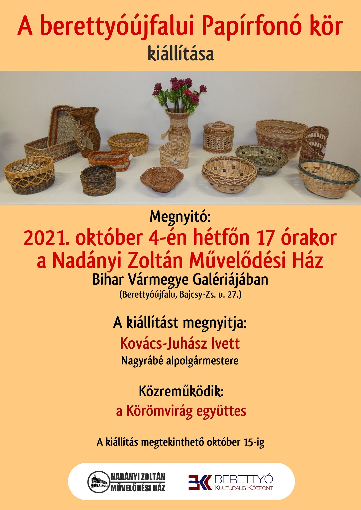 2021. november 4-én, hétfőn 17 órakor a berettyóújfalui papírfonó kör kiállításának megnyitója lesz a Nadányi Zoltán Művelődési Ház Bihar Vármegye Galériájában.