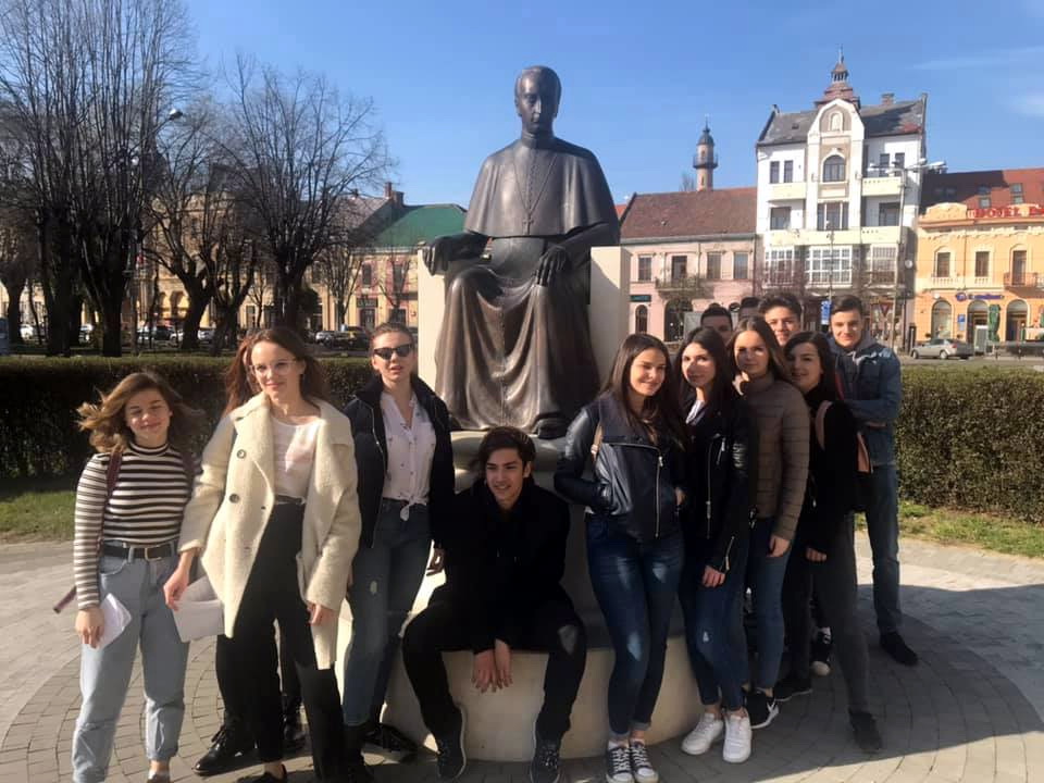 2019. március 29-én indultunk Szatmárnémetibe. Fogadó Intézményünk a Kölcsey Ferenc Főgimnázium Szatmár, sőt egész Románia legnagyobb létszámú, tisztán magyar nyelvű iskolája. Viszontagságos történelme ellenére sikerült kivívnia a főgimnázium rangot, amelyet nemzetközileg is elismert eredményeinek és rendkívül kimagasló színvonalú oktatásának köszönhet.
