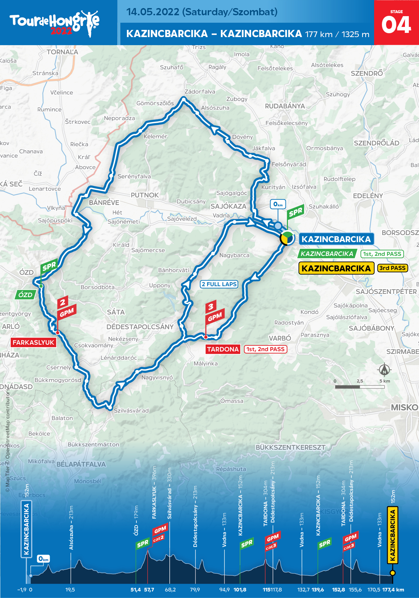 4. szakasz, 2022. május 14., szombat: Kazincbarcika–Kazincbarcika (177 km)