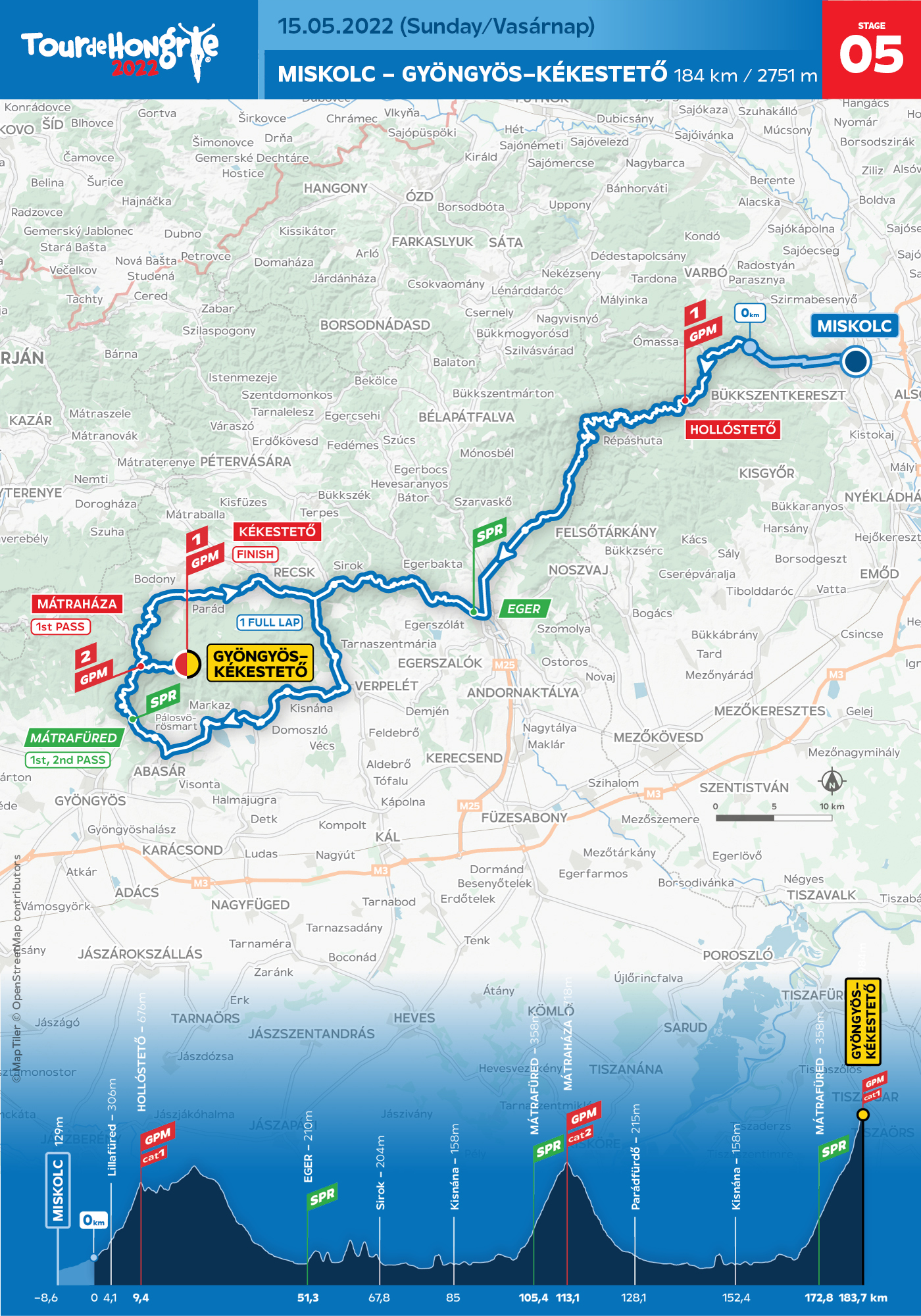 5. szakasz, 2022. május 15., vasárnap: Miskolc–Gyöngyös-Kékestető (184 km)